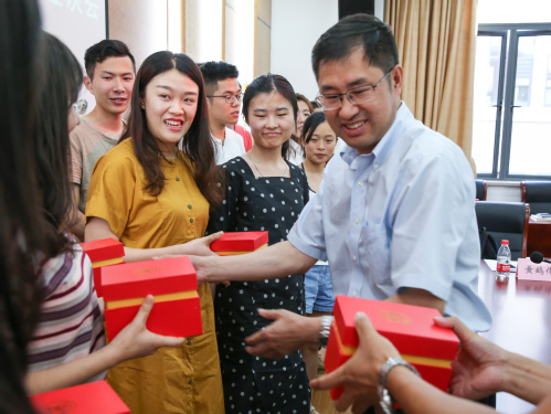 最后,蒋校长为毕业生代表们赠送印有《上财赋》的纪念品,希望各位未来校友不负时代,激扬前行,以经济匡时之精神,投身祖国建设和民族复兴。
