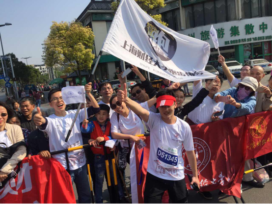 在马拉松4公里处、5.8公里处、11.8公里处、20公里处、终点不到100米处,上财助威点马拉松沿线全覆盖,“上财,加油”的呐喊声成为上财选手们比赛中的能量剂! 在接近终点时,一位校友已显示出极度疲惫的状态,但听到上财助威团的加油声,看到在风中飘扬的校旗、助威团的笑容和挥舞的双手时,瞬间疲惫一扫而空,脸上更闪耀出灿烂的笑容。