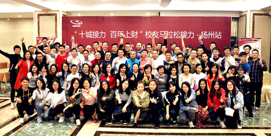 2017年4月22日,各地60多位校友和在校生马拉松选手奔赴扬州参加次日举行的扬州马拉松比赛,另有40余位的加油助威团一同前往。上财一行百人浩浩荡荡地闯入已入烟花三月尾声的扬州。这次扬州站活动是继厦门、无锡、武汉站活动后的第四站。本次活动也是由国际工商管理学院校友会和江苏校友会(筹)共同承办。
