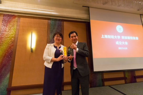 校友总会副秘书长张彦波宣读同意成立新加坡校友会的批复,副校长方华向新加坡校友会授牌,上财新加坡校友会正式成立!