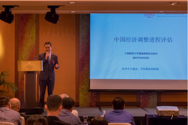 成立大会之后,进入“一带一路”经济论坛环节,论坛由朱春晓副会长主持。南洋理工大学拉惹勒南国际研究院高级研究员胡逸山博士以“一带一路”与东南亚的机遇、挑战与期待为主题展开演讲,从东南亚国家的角度讲述了“一带一路”政策所带来的影响。随后,上财校友、东盟与日韩宏观经济研究办公室高级经济学家李文龙博士就中国经济结构调整评估发表演讲,他的分析深入浅出,各位来宾和校友们积极提问,现场气氛火热。