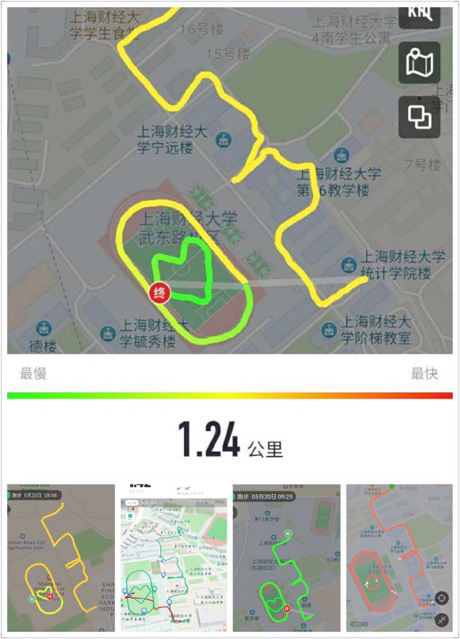 在接下来跑出“2”的轨迹并每人依次说出含“爱”字的四字成语后,各队通过南门进入操场,绕操场跑出“0”的形状,并在操场中央走出一个心型轨迹。在完成所有路线和任务后,队员将跑步路线截图上传至工作人员处,接着每支队伍分别合影留恋,活动在一片欢声笑语中圆满结束。值得关注的是,活动进行时气温较高,烈日炎炎,但队员们都精神抖擞,积极参与了全程活动,没有一个队员退出。整个活动过程井然有序,每个工作人员和参与者都全心投入其中,确保了活动的顺利进行,展现出了上财学子良好的精神风貌。
