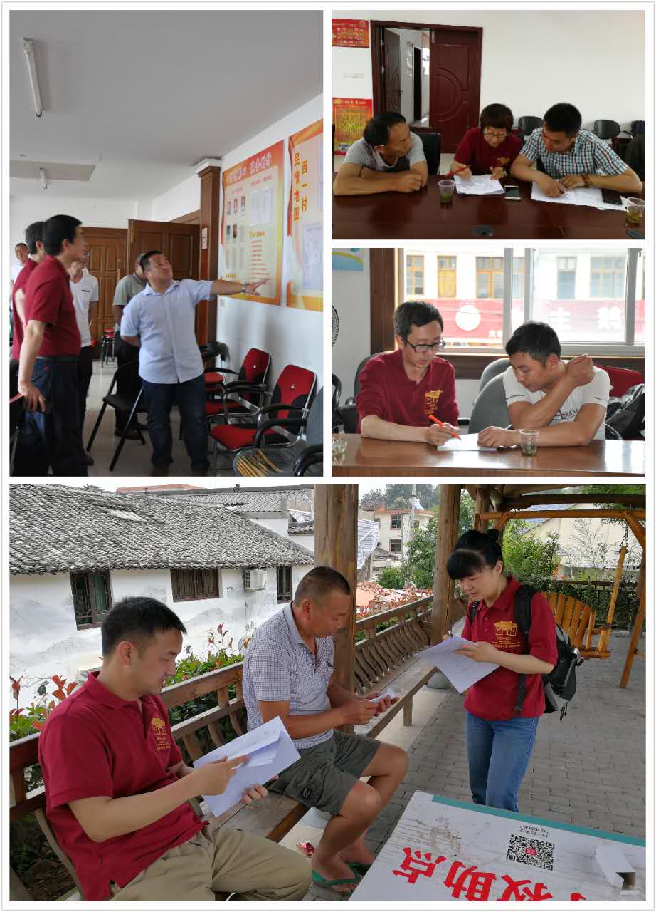 在松阳县经济商务局,崔丽丽老师首先详细介绍了我校千村调查基本情况,并就今年千村主题与调查的主要内容做了介绍。预调研工作小组成员分别与经济商务局及农村信用社的工作人员进行了交流和访谈,通过访谈了解到松阳县目前初步形成了以木质加工品、茶叶、地方特色农副产品、松香、服装等为主的几大电子商务特色产品销售,并连续三年被阿里研究院评为“中国电商百佳县”。劳帼龄老师主持,与浙江农村信用社工作人员就问卷中互联网金融应用板块的问题进行了深入探讨和沟通,为后期问卷的修改设计提供了方向。随后,预调研工作小组来到西屏街道一村街道办事处,村长介绍了本村治安、注册企业、税收、电商发展等情况,并与当地村民开展现场访谈。在上河村便民服务中心,通过村长的介绍,了解到该村主要产业为中华鳖、茶叶、香菇,其中中华鳖的养殖历史比较悠久,知名度较高,政府积极支持淘宝村的申办,希望通过农村电商平台的打造带动地方经济的快速发展,在与村干部交流完情况后,各位老师分组开展村民问卷调研访谈。预调研第二天,在以茶叶种植为主要经济收入来源的赤寿乡大木山村,各位老师深入农户家中,一边与村民攀谈,一边了解当地农村电商开展的基本情况,村民们用淳朴的语言热情地回答了调研问题。