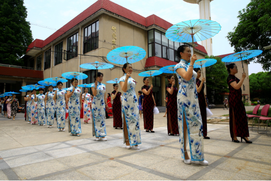 活动尾声,老师们撑着伞,袅袅婷婷穿过校园,前往武东路校区老校门门口合影留念,古色古香的老校门与优雅婉约的旗袍相映成趣。本次快闪活动不仅是上财女教职工们为上财百年献上的一份独特的贺礼,而且也充分展示了上财巾帼的靓丽风采,促进了传统旗袍文化的传承。