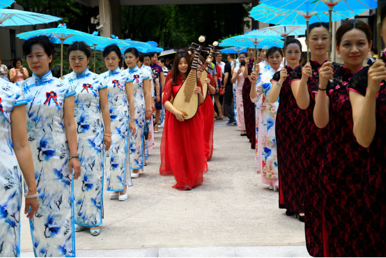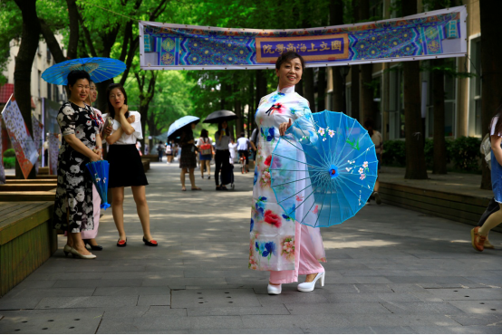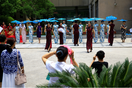 5月31日中午,在国定路校区的绿叶步行街上,上财妇委会、上财团委与上财旗袍文化协会联合举行了“海派琴韵,共贺百年”旗袍民乐快闪活动,我校副校长、校妇委会主任刘兰娟也身着靛青旗袍来为这次表演助阵,引来了颇多老师同学围观。