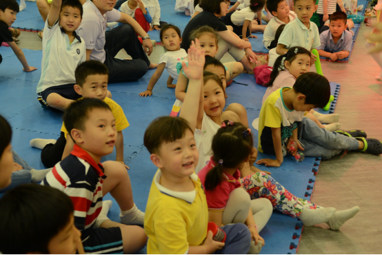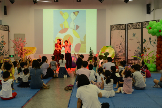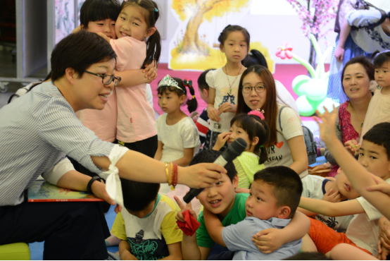 活动开场,故事派的老师们首先教会了小朋友们爱的鼓励,接着对在场的小朋友和家长们表示了儿童节的祝福。活动的第一部分是同济实验学校故事派团队带来的新版《鸭子鸭子鹅》的绘本剧表演,通过别开生面的表演方式,与小朋友们热烈的互动,使他们在享受故事趣味之余,也体悟到了一定的生活道理;第二部分是设计巧妙的故事绘本课,由老师朗读绘本故事《会飞的抱抱》,这是一个孩子要给奶奶送抱抱的故事,意在教育孩子要善于表达关怀与善意。这次活动主要通过两个环节的展示,希望提示家长们绘本是可以表演的,可以有互动和肢体接触的,而不只是你听我读。选择绘本,选择温情,不仅收获了知识,更是在做一种美学熏陶。