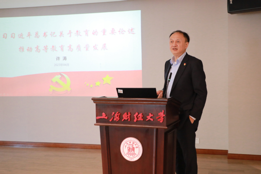 4月27日上午,根据学校主题教育工作部署,上海财经大学举行主题教育读书班暨党委理论学习中心组学习会,会议聚焦“学习习近平总书记关于教育的重要论述,推动高等教育高质量发展”进行集中学习研讨,党委书记许涛主持并领学。教育部直属高校学习贯彻习近平新时代中国特色社会主义思想主题教育第六巡回指导组组长赵忠,副组长谢守成,指导组成员王超、吴峰和马俊等出席会议。