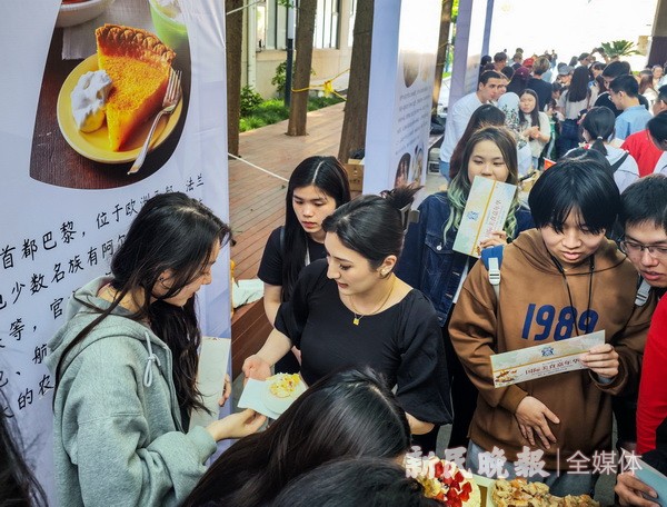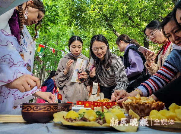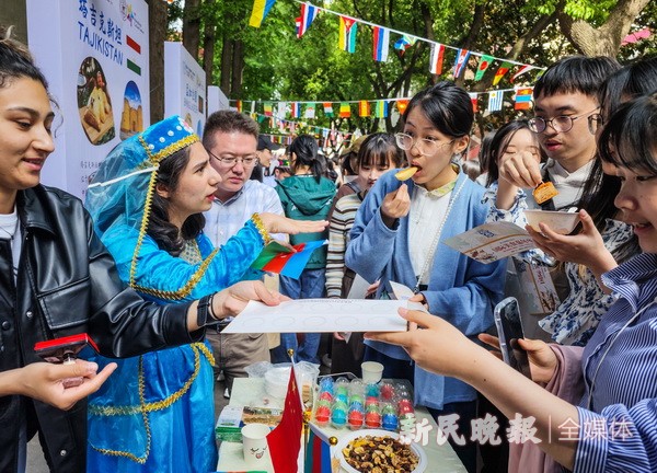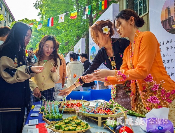 南非的博士茶、阿根廷的烤肉、马来西亚的娘惹糕点……不同国家的美食荟萃,在春末夏初的校园里形成了“舌尖上的世界”。今天下午,上海财经大学第十九届国际文化节开幕式暨国际美食嘉年华在国定路校区绿叶步行街举行。本届文化节以“融汇多彩各国文化,共建和谐国际校园”为活动理念,以“四海一家:燃动时代,共赴未来”为主题,通过丰富多彩的系列活动展现世界各国的优秀文化,展示上财中外学子风采。今年是“一带一路”倡议提出10周年,在本次美食嘉年华21个由留学生负责的展台中,就有17个来自一带一路沿线的国家展位。