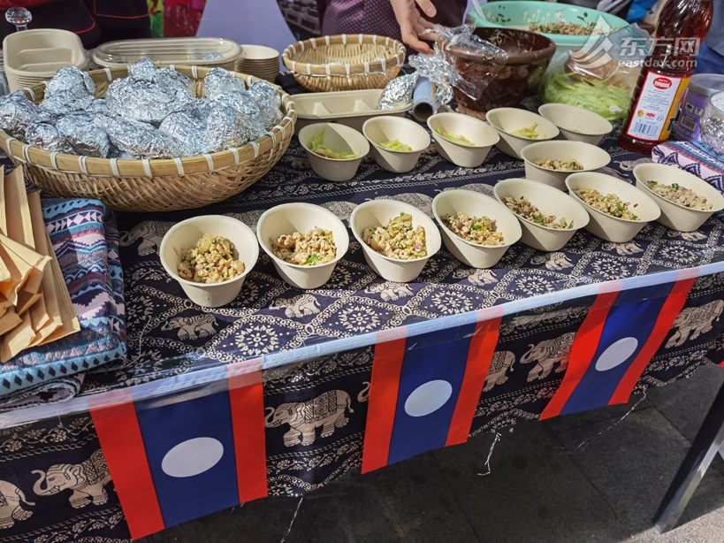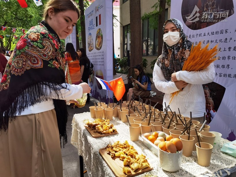 东方网记者范易成5月9日报道:南非的博士茶、阿根廷的烤肉、老挝的糯米饭、蒙古的牛肉饼、马来西亚的娘惹糕点……来自“舌尖上的世界”。昨天下午,在上海财经大学国定路校区绿叶步行街,一场美食嘉年华拉开了上财第十九届国际文化节的帷幕,这也是国际文化节自2019年后,时隔三年再次举办。