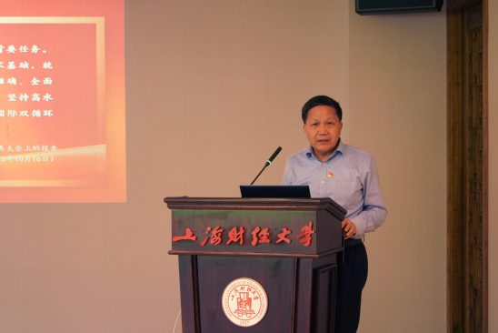 陈信元同志以“深刻理解高质量发展是全面建设社会主义现代化国家的首要任务”为主题领学。在原原本本领读了习近平在中国共产党第二十次全国代表大会的报告中的相关论述后,他从三个方面对如何深刻理解高质量发展是全面建设社会主义现代化国家的首要任务进行了阐述。对于为什么要高质量发展,他系统梳理了我国经济发展进入新常态是转向高质量发展的现实背景,分析了新常态下我国经济发展的新特点和趋势,深刻阐述了推动高质量发展的必要性和重大意义。对于什么是高质量发展,他从根本目的、原则遵循和具体要求等角度阐释了高质量发展深刻丰富的内涵要求。对于怎样推动高质量发展,他推动高质量发展,要构建高水平社会主义市场经济体制、建设现代化产业体系、全面推进乡村振兴、促进区域协调发展、推进高水平对外开放。最后,陈信元同志根据所学结合学校工作,对学校高质量发展在五个方面提出进一步的思考。