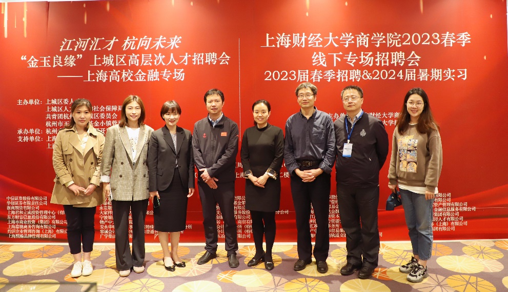 5月9日,杭州市上城区-上海财经大学人才供需与校府合作交流会暨上海财经大学商学院2023春季线下专场招聘会在上海檀程大酒店成功举办。杭州市重点金融企业以及我校定向邀约优质用人单位45家,共计推出岗位201个,释放用人需求1000+。其中,80%以上岗位向今年应届生开放,吸引校内校外莘莘学子约千人次前来应聘。
