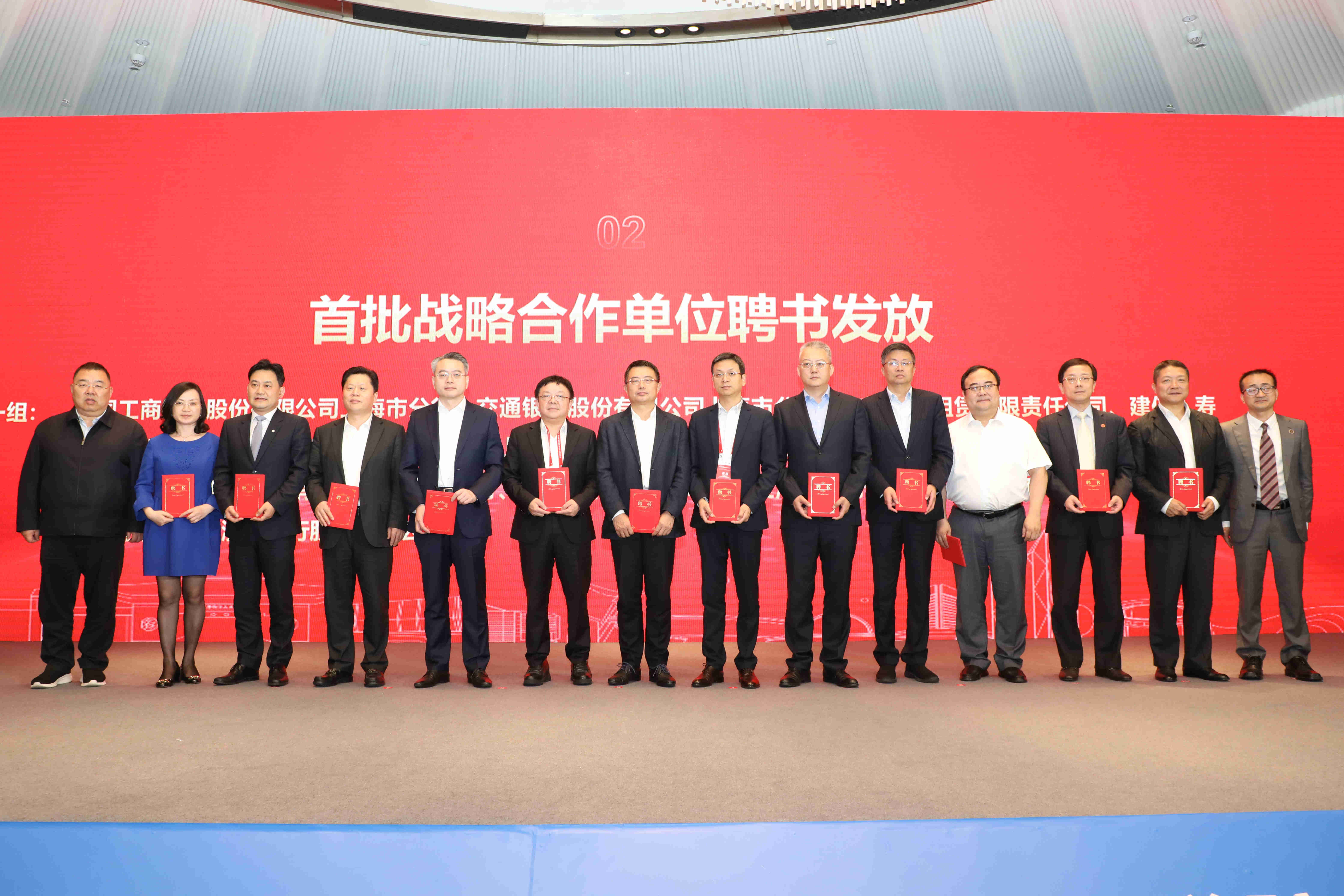 上海市临港新片区党工委副书记袁国华与上海财经大学校长、滴水湖高级金融学院院长刘元春共同为首批战略合作单位发放聘书之二本网记者 查建国/摄