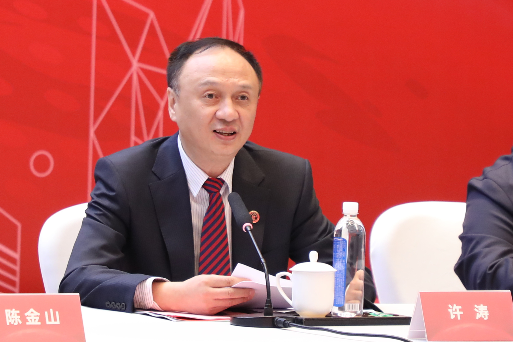 上海市委常委、临港新片区党工委书记、管委会主任陈金山作重要发言 本网记者 查建国/摄