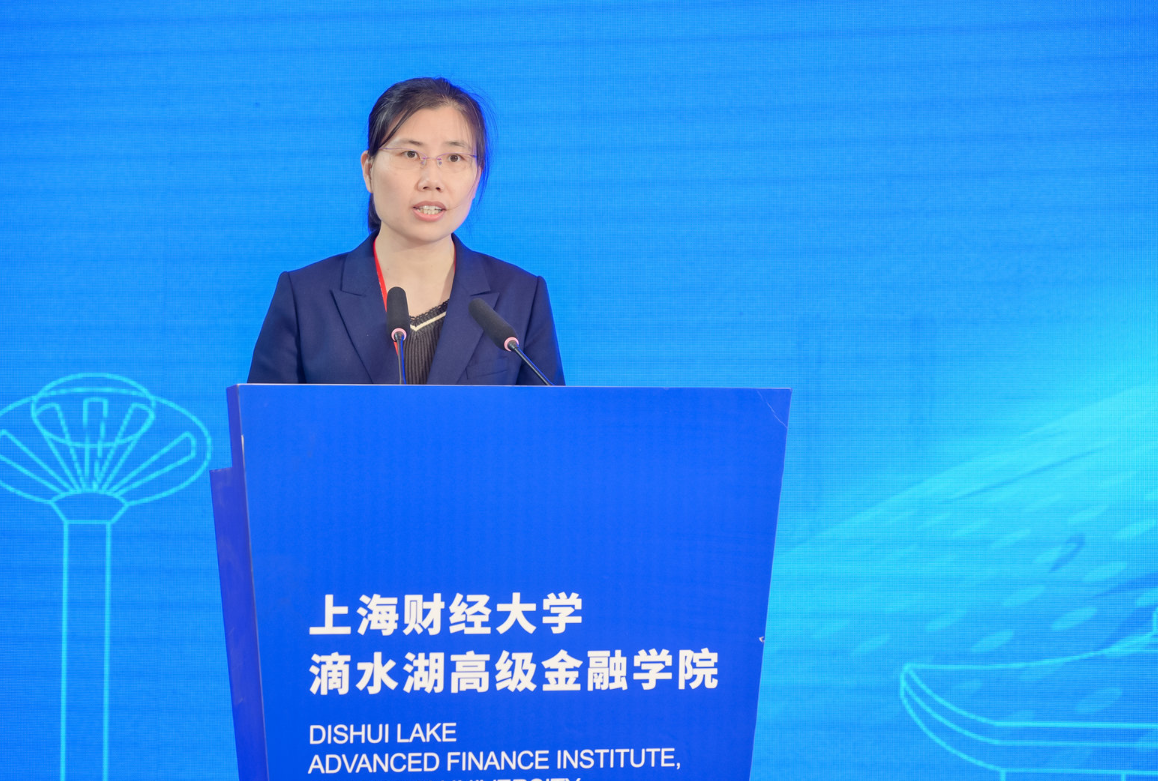 论坛上半场由上海财经大学党委常委、副校长姚玲珍主持,聚集了一批重量级的演讲嘉宾,其中包括北京大学光华管理学院院长刘俏教授,交通银行首席专家、交银金融租赁党委书记兼董事长徐斌先生以及上海财经大学法学院副院长朱晓喆教授。在主持上半场演讲时,姚玲珍副校长表示在中国式现代化建设的新征程中,推动“碳达峰”、“碳中和”的“双碳”战略已成为重要使命,而在推送绿色发展过程中,金融发挥着至关重要的作用。未来上海财大滴水湖高金学院将会把绿色金融作为新兴金融教学科研工作的重要组成部分,为上海国际金融中心建设和国家“双碳”战略提供支撑。