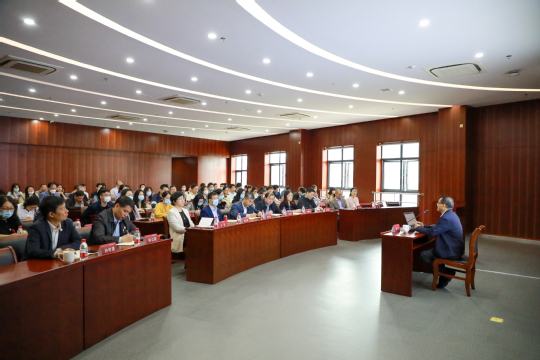 高等研究院副院长林立国主持交流讨论环节。他表示,从高质量发展理论到宏观经济经典理论,再到当前经济形势的分析,刘校长都有着深入的研究与分析,将党课与研究有机结合,为大家带来了印象深刻的一课。