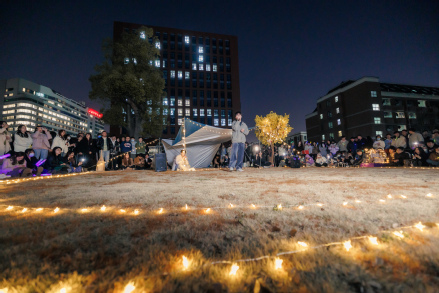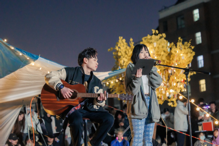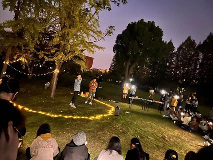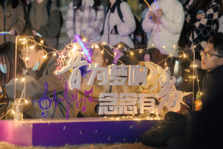 方寸草坪上,大功率接电和舞台搭建不便,策划同学们将创意发挥到极致,从星星灯带、移动音箱到落地帐篷,打造了温馨而精彩的青春音乐舞台。现场上,歌手与听众如约而至,济济一堂,台上台下,灯光互照,歌声与人声相应和,让同学们沉浸其中。