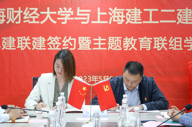 此次党建联建活动中,学校还与二建集团签订了共建学生联合培养基地协议,“上海财经大学上海建工二建集团学生实习基地”同步揭牌。二建集团陈新董事长表示,将积极主动作为,用好联建载体,发挥好组织优势,为优秀学子提供学习和锻炼的良好平台。徐飞常务副校长代表学校对建设者们表示感谢,对二建集团在智能建造、绿色施工等各方面展现的专业管理水平表示肯定,希望二建集团在工程进度、质量、安全文明施工管理上精益求精,精心打造品质工程。