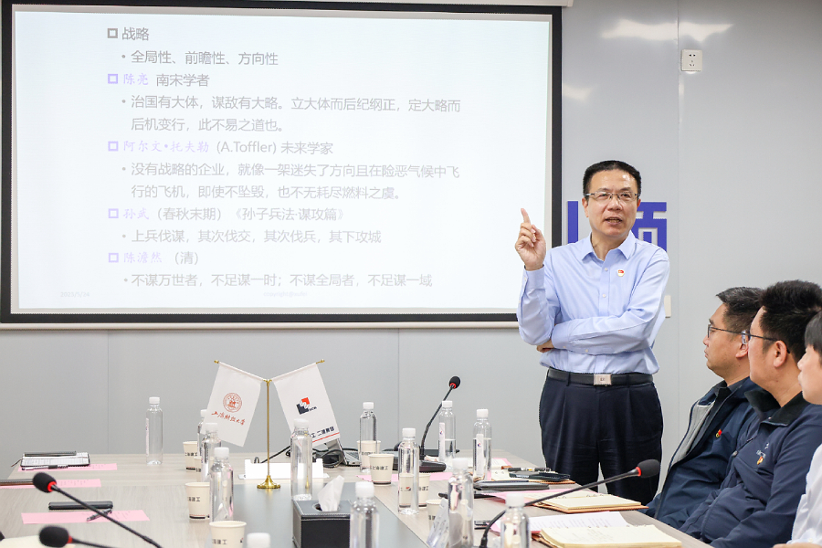 签约揭牌仪式后,双方共同开展主题教育联组学习活动——徐飞常务副校长以《深入学习领会习近平新时代中国特色社会主义思想中七大思维的核心要义》为题向与会党员讲授专题党课。