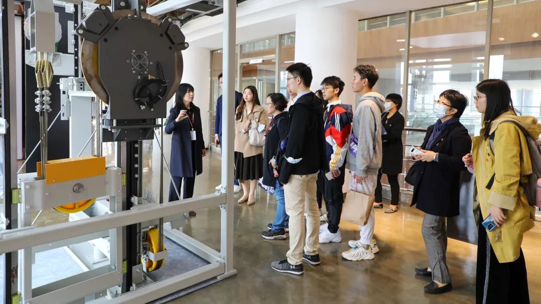 参观活动的最后一站是厂房。厂内整洁的环境、现代化的机械设备、多种安全性保障模拟实验、精确到百分比的流程计划表等,让大家真切感受到了东南电梯“精益求精、追求卓越”的企业精神。师生们来到电梯体验区一一体验了别墅电梯、观光电梯、30吨大电梯、豌豆电梯等不同产品,从而对东南电梯服务国家战略,融入地方发展的“家国情怀”有了深刻体会。