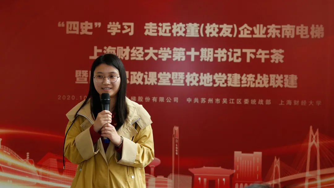 下午的交流发言环节,长三角与长江经济带发展研究院执行院长张学良,学生何畅、王雨舟、余子然作交流。他们表示吴江区的创新创业环境和优质人才政策以及东南电梯股份有限公司先进的企业文化、人文关怀和社会责任给他们留下了深刻印象。本次活动,以行走的思政课堂、聆听企业发展历程、感悟企业文化、座谈交流分享等形式,让师生在实践中学习,在体验中感悟,以春风化雨的方式推动思政教育入心入脑。