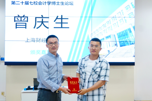 闭幕式上,上海财经大学会计学院副院长曾庆生为获奖博士生颁发荣誉证书并进行总结。他鼓励博士生们在学术研究中继续保持创新精神,勇于探索新的研究领域,为学科发展和学术进步贡献更多力量。