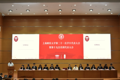 6月3日上午8点30分,上海财经大学第二十一次学生代表大会暨第十九次社团代表大会在创业中心举行。校党委副书记朱鸣雄,以及各职能部门负责人、各学院党委、党总支副书记、分团委书记、市学联代表、兄弟高校代表出席本次会议。