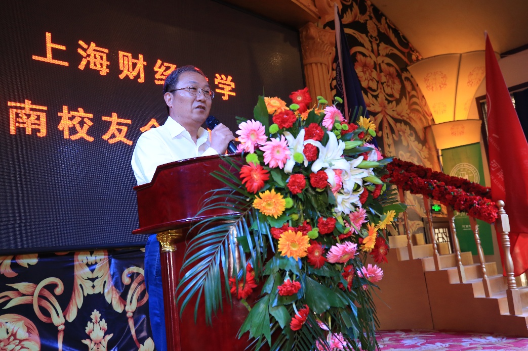 最后,上海财经大学副校长、校友总会秘书长方华发表讲话。方华副校长肯定了河南校友在政府部门、企事业单位、教学科研等各行各业发挥重要作用、取得骄人成绩,为母校赢得了良好的社会声誉。同时,他还对河南校友为母校发展和校友会建设所做出的一系列努力表示感谢,希望河南校友会再接再厉,继续为河南校友搭建更加优质的交流互动平台,营造积极向上的校友文化氛围,共迎母校百年华诞。