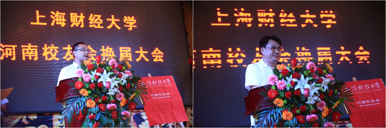 随后,河南校友会新当选会长马国臣发表感谢致辞。他首先感谢母校,母校对学子的殷殷关怀以及樊丽明校长在与河南财政厅签署战略合作协议期间,给予河南校友会工作的关心指导;其次感谢社会各界的关心,广大校友为河南经济社会发展献言献策、勤勉尽力;再次感谢兄弟校友会,在换届筹备各个环节给予的指导和帮助;最后,感谢全体上海财经大学的河南校友,并表示会遵循“服务校友发展,服务母校发展”的宗旨办好河南校友会。