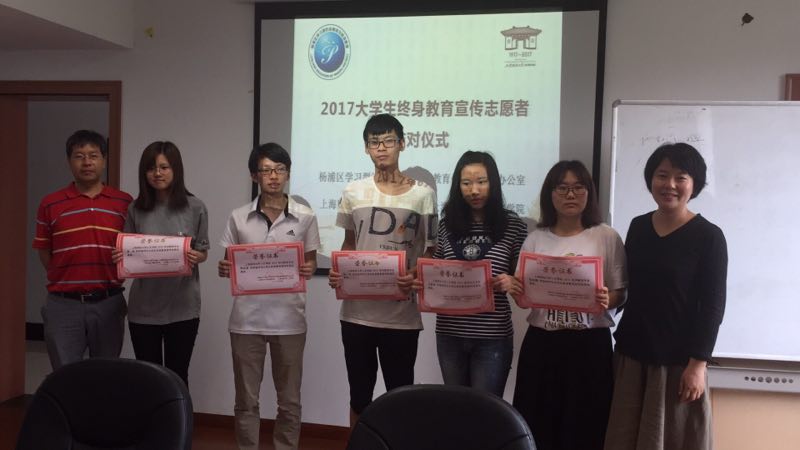 6月6日下午,由杨浦区学习型社会建设与终身教育促进委员会办公室、上海财经大学党委宣传部、上海财经大学人文学院联合举办2017年大学生终身教育宣传志愿者结对仪式在同新楼201顺利举行。杨浦区学习办主任王建平、上海财经大学党委宣传部文明办主任吴志超、人文学院党委书记杨乐、副书记刘凯、两位辅导员老师及各街道社区学校校长和人文学院的新老志愿者们出席了本次仪式。会议由杨浦区学习办项目部平晨部长主持。