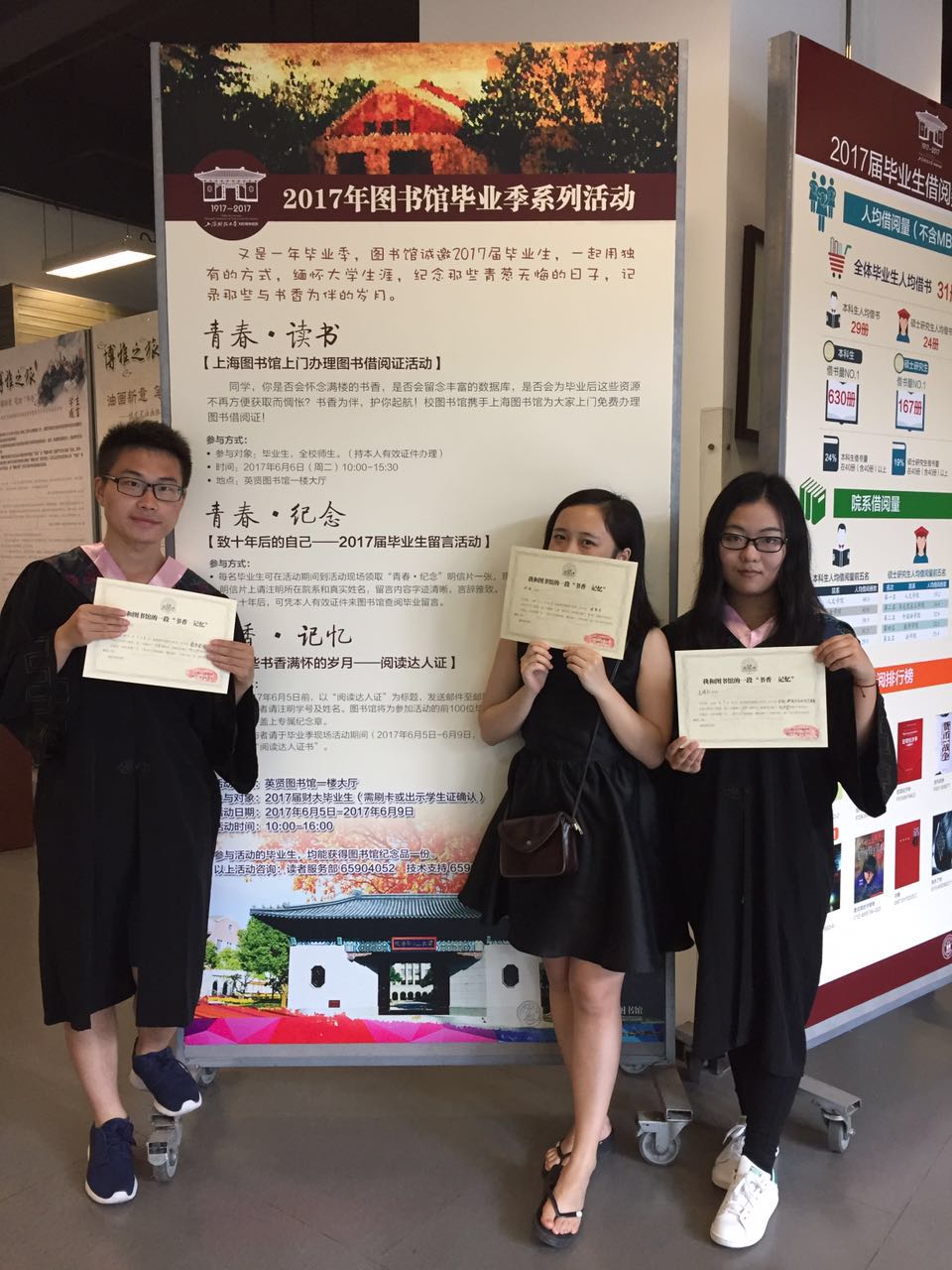 本次活动是图书馆毕业季系列活动之一。图书馆毕业季活动包括“青春·读书”、“青春·纪念”和“书香·记忆”等三个主题,分别开展了“上海图书馆上门办理读者证”、“致十年后的自己——2017届毕业生留言”和“致那些书香满怀的岁月——阅读达人证”等活动,后两项活动将持续到6月9日。同时,图书馆还发布了本届毕业生的借阅数据。