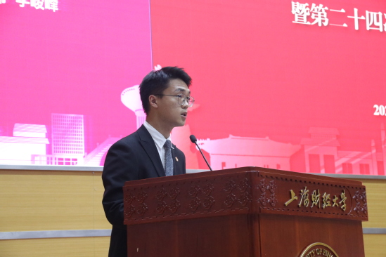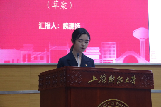 其后,上海财经大学第二十六次学生代表大会提案工作组负责人魏潇扬同学代表筹备委员会向学生代表们汇报了大会提案工作,总结了教务教学、学生活动、设施建设、后勤保障、学生自我发展五大板块的各类意见建议及具体反馈情况,有效实现了学校与学生之间的桥梁纽带作用,有力展现了学生代表们积极参与校园民主治理的责任与担当。
