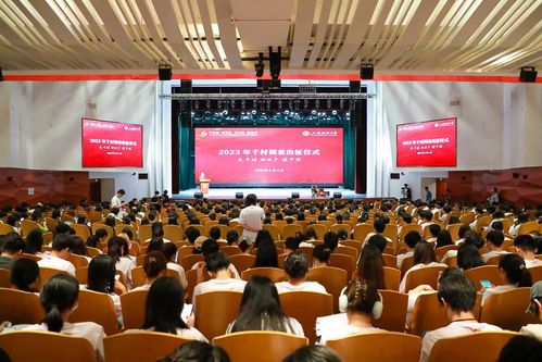 全体校领导为参与千村调查的同学授旗。校党委书记许涛宣布:2023年千村调查出征。