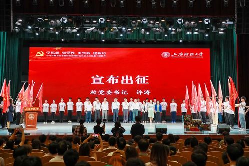 出征仪式在庄严的国歌声中开始。金融学院粟芳教授、财经研究所博士生王美知、法学院硕士生王佳怡和经济学院本科生俞涵歌,作为曾经参加千村调查学生代表,作题为“数说千村 勇担使命”的主题分享。俞涵歌同学从“聚焦现实问题,传承红色基因”的视角,分享了自己参与千村调查、劳动教育和党史学习的收获。王佳怡同学分享了通过参与千村调查,坚定自己到西部支教的决心的千村调查故事,并祝愿同学们在本次千村调查中有所学,有所感,有所为。王美知同学结合自己的成长和求学经历,分享了自己走千村、寻答案的学术研究历程,并交流了参与千村调查劳动教育和党史学习的感悟。粟芳老师从用数据讲好田野故事的科研视角,分享了自己参与千村调查的研究收获,以及千村调查育人成果。