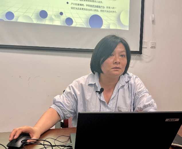在会议中,保卫部曹伟丽老师就毕业生户口管理工作中涉及的法规要求,以及户籍证明、身份证补换、户口托管、户口迁出等业务工作进行了详细讲解,对毕业生户口迁移工作的具体操作细节法进行了全面详尽的培训。
