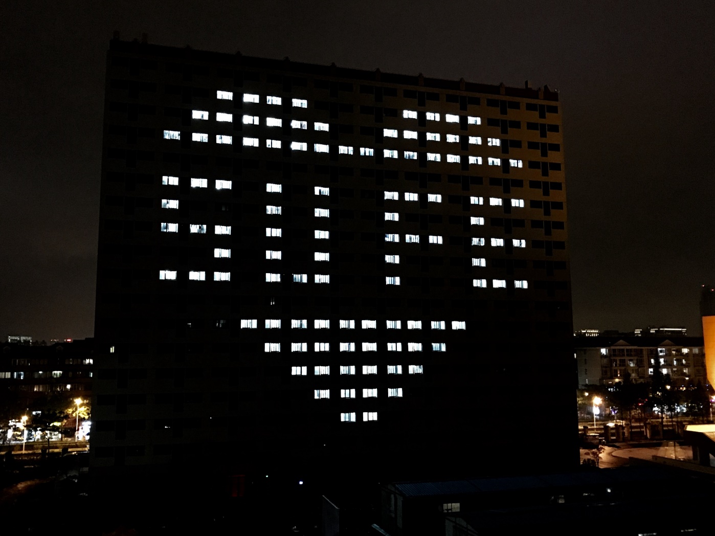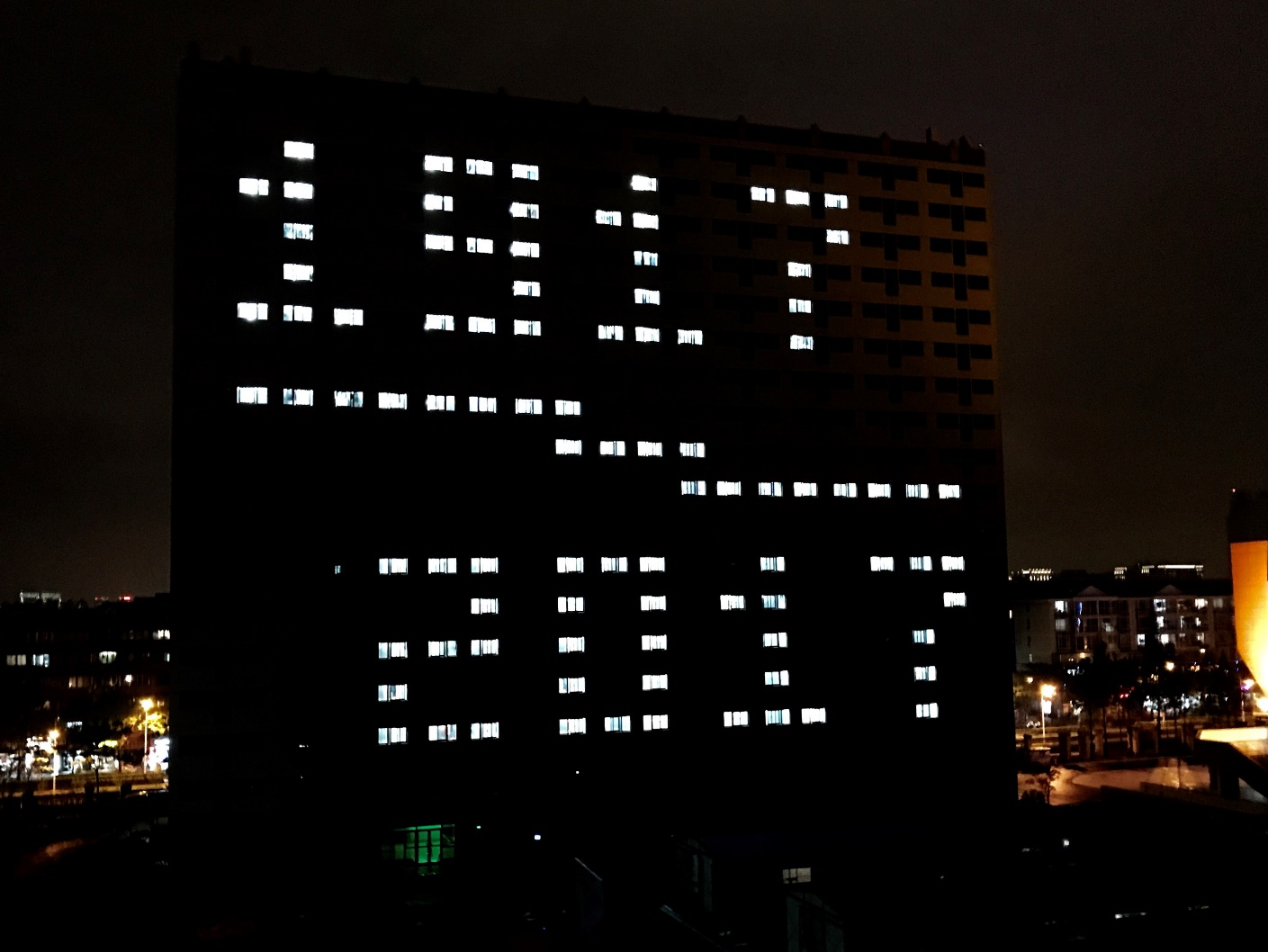 草坪音乐节结束后,伴随着动听的歌声,亮灯仪式拉开了序幕。在现场百余名师生的倒数声中,20号楼的灯光亮起,首先出现的是倒计时“3”、“2”、“1”的图案。随后,一颗包含数字“1917”的心跃然而出,代表着上财历史的开端。5分钟后,图案变换成“1917-2017”,寓意我校历史悠久,历经百年变迁。接着,图案再次变回了心形,不同的是中间数字变换为“2017”,这是上财的现在,也是每一位毕业生的现在。最后,“SUFE”字样跃然眼前,简单的四个字母却饱含了上财人对上财的挚爱。整个过程中,现场的老师和同学们不停地欢呼赞叹,纷纷拿起手机和相机记录下这一精彩难忘的画面。