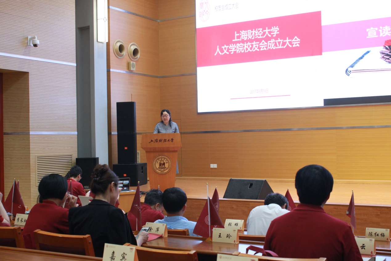校合发处处长陈红梅宣读成立人文学院校友会的批复。