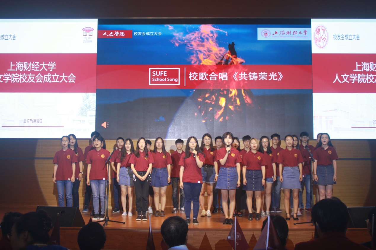 会议结束后,百余位校友和嘉宾统一着财大红的人文纪念T恤合影留念。人文学院校友会成立当天上午,还举办了全国经济哲学青年论坛成立大会暨首届高峰论坛;会议结束当晚,人文学院举办了2017届人文毕业晚会。至此,人文学院校友会成立大会在喜庆而特别的日子里圆满落下帷幕。