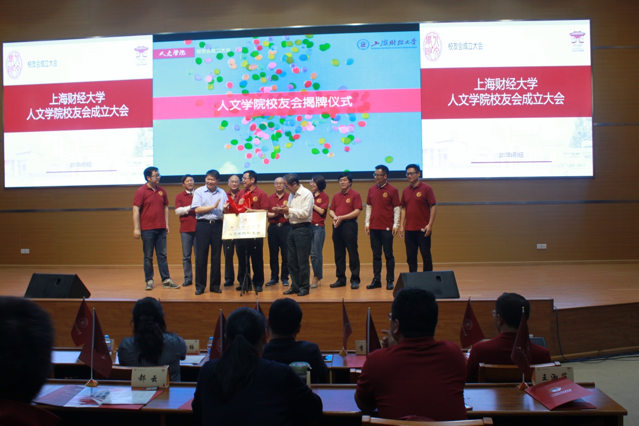 会议审议通过了人文学院校友会章程、人文学院校友会第一届理事会理事成员名单。随即组织召开人文学院第一届理事会第一次会议,根据《人文学院校友会章程》规定选举产生人文学院第一届校友会组织机构,会上还进行了人文学院第一届会长、副会长见面仪式。随后,上海财经大学副校长、上海财经大学校友总会秘书长方华、人文学院校友会名誉会长张雄、人文学院校友会会长李卫东共同为校友会成立揭牌。上海财经大学校友总会、国际工商管理学院校友会、信息工程与管理学院校友会、法学院校友会等送来贺礼、发来贺信贺卡,共同祝贺人文学院校友会的成立。