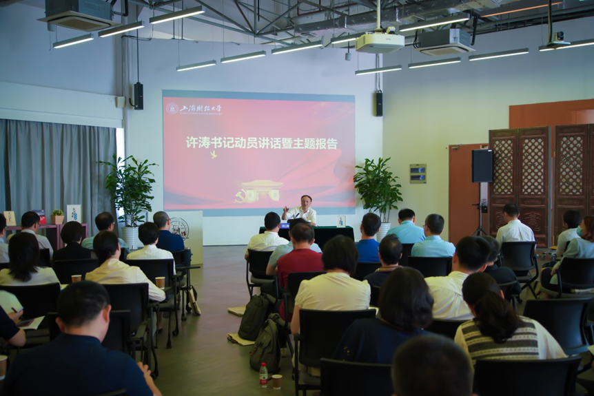 许涛书记以“干正确的事,正确地干事”为主题做动员报告,他结合从事教育工作近40年的工作经验和心得感悟,与新任干部分享了工作思路与方法,认为学校的建设发展要具体围绕“人才培养、科学研究、社会服务、文化传承创新和国际交流合作”五项基本职能展开。一是要坚持和加强党对教育工作的全面领导。学校党委始终全面贯彻党的教育方针,落实立德树人根本任务,坚守底线思维,以教育强国建设为目标,以全面提高人才自主培养质量为重点,加快建设成为财经特色鲜明的世界一流大学,办好人民满意的教育。二是要注重百年上财的传承与发展。学校至今已走过了一个多世纪的光辉历程,九易校名,十迁校址,迭遭烽火而弦歌不辍,始终与国家民族命运同呼吸,与中国的现代化进程相伴随。百年校史需要我们去传承,新任干部应不负韶华,从历史中汲取智慧和力量,续写新发展新辉煌。三是遵循教育规律,提高履职能力。全体新任干部要牢记作为教育管理者的初心和使命,真正以学生为中心,坚持为党育人、为国育才,坚持守正和创新,保持干事创业的热情,不断优化工作思路,勇于开辟事业发展的新领域新赛道,为推动学校事业发展不断塑造新动能新优势,为实施科教兴国战略、强化现代化建设人才支撑奠定坚实基础,为全面建设社会主义现代化国家、全面推进中华民族伟大复兴作出上财人的新贡献。