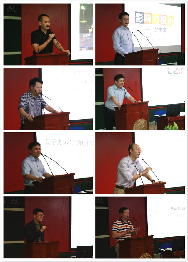 下午共享经济与社会价值投资论坛由校两办副主任、创业学院副院长宋达飞主持,科研处副处长郑春荣代表学校致辞。优联资本董事长王孝华、上海牛奶集团执行董事万黎峻、创业学院执行副院长刘志阳教授分别进行了“共享经济时代与新商业文明”,“影响力投资”和“创业型社会与社会创业”的主题演讲,中关村互联网金融研究院执行院长刘勇、纽约州立大学李涌教授、上海财经大学法学院副院长胡凌、第一财经基金会副秘书长周旭峰、知名社会创新者闫加伟分别进行了“中国金融科技发展报告”、“共享经济与众筹”、“分享经济的法律结构”、“公益金融的未来”、“公共空间运行的机会”等专题演讲。