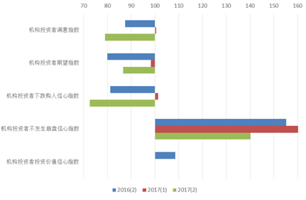 (三)2017年第二季度上海市机构投资者信心指数为94.55点,比前一季度下降16.26点,同比下降6.81点,指数下降至悲观区域。