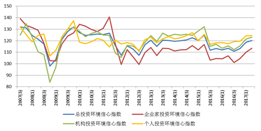 (一) 2017年第二季度上海市投资环境信心指数为120.32点,环比上升1.75点,同比上升6.97点。指数位于乐观区域。