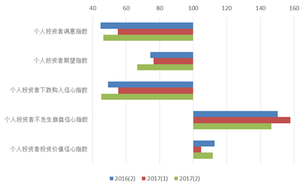 (四)2017年第二季度上海市个人投资者信心指数为83.26点,比上季度下降6.55点,同比下降3.02点,仍处于悲观区域。