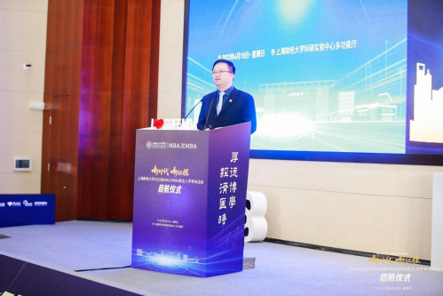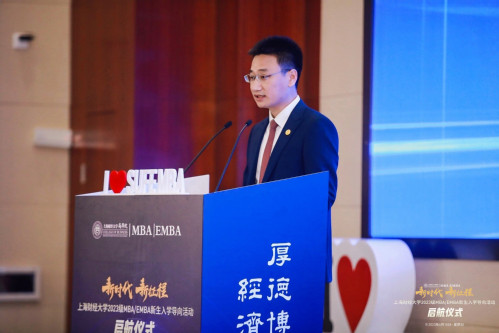 上海财经大学商学院MBA中心学术主任陈志俊以“寻百年商学之源、立经济匡时之志”为题追溯百余年海派商学历史,为在场的新生们展现了一个个创造和推动商学发展的鲜活动人的故事,在感动和启发中号召新上财人,深刻感悟“经济匡时”所蕴含的责任与力量,扬帆斩浪,践行担当,以己之力,圆经济扶世梦,铸民族复兴魂。