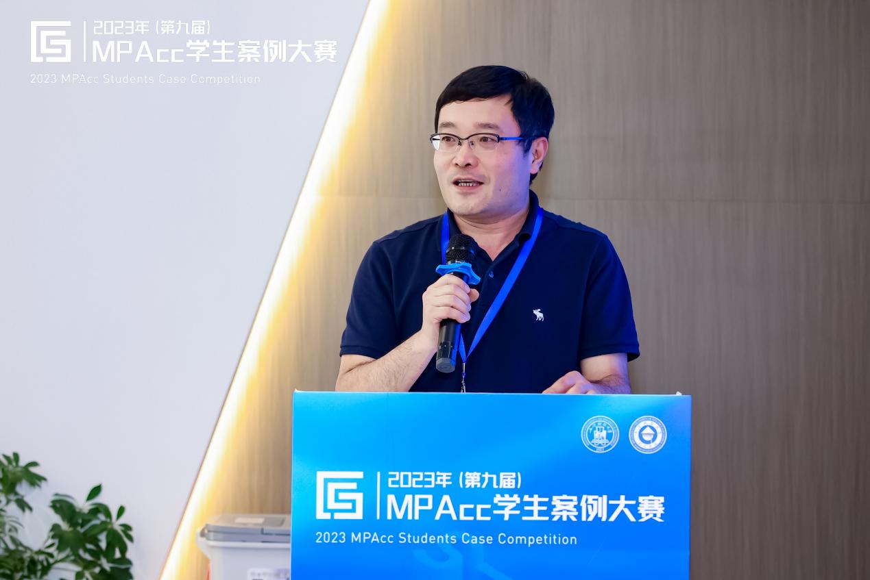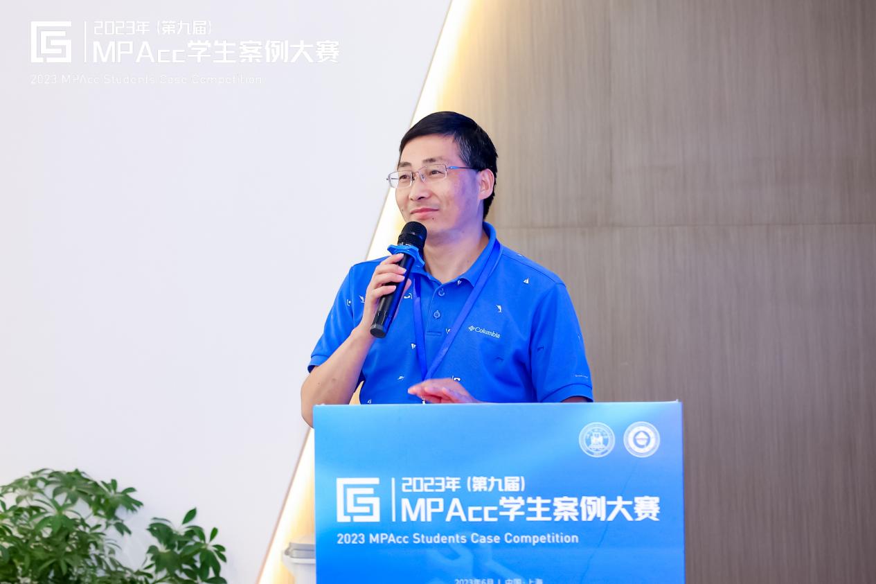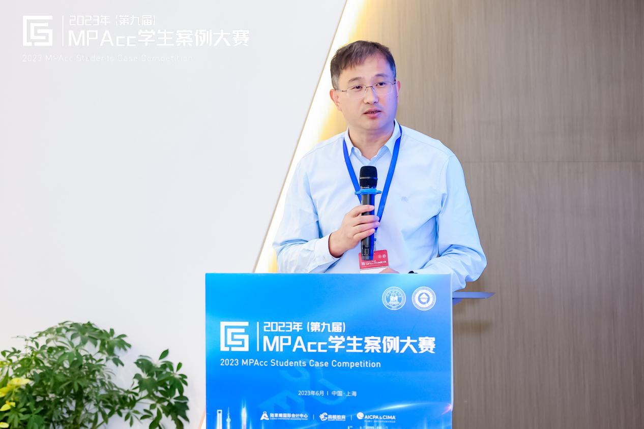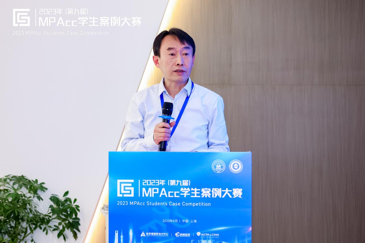 浦东新区财政局副局长周建军代表浦东新区财政局对本次活动的圆满举办表示热烈祝贺!他谈到本次大赛决赛所在地——“陆家嘴国际会计中心”是为全力推动会计专业服务业实现跨越式发展、建立会计服务机构集聚高地的一个国际化会计交流平台,本次案例大赛是其建成以来首场全国性的学术类活动。并表示浦东新区作为社会主义现代化建设引领区,汇集了众多全球领先、国内顶尖的会计服务机构,欢迎大家未来深耕浦东、共谋发展、共创未来。
