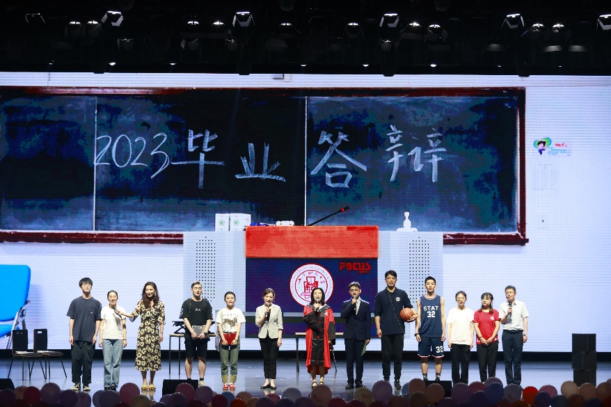 “长亭外,古道边,芳草碧连天。”舞台最后,来自上财四所附属学校、西藏日喀则市南木林高级中学的师生代表以彩蛋视频的形式,为2023届毕业生送上来自他们的真挚祝福,祝愿莘莘学子前途似海来日方长,以梦为马不负韶华。