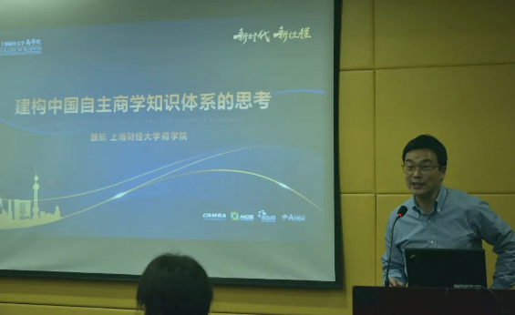 商学院党委书记魏航教授作题为《建构中国自主商学知识体系的思考》的主题发言,魏教授主要从西方知识体系借鉴、建构自主知识体系探索、建构自主知识体系策略等三个方面展开阐述,他首先简要介绍了未来学院在教材建设方面的整体规划,并开门见山表达了自己的观点,“构建中国自主的知识体系最重要的是知识体系,知识体系中最核心的是教材体系,培养人的过程中最后的落脚点一定是教材,所有的知识的方案、体系都是通过教师利用教材的使用把它呈现出来的。”随后,他结合主题教育学习内容,在客观分析了中国商学教育“前30年”借鉴西方商学体系现状基础上,就学院在体系的探索性尝试,指导思想以及构建策略等作了深入交流。“在借鉴西方商学体系过程中,我们大量使用了西方的案例、西方的企业、西方的企业家;然而,对于中国的案例、中国的企业、中国的企业,我们却缺乏深入的研究,在课程中使用比例过少,教师们对于中国实践研究较少。因此,我们很需要把中国改革开放40年来发展的成绩放进(教材)去。” 他表示。