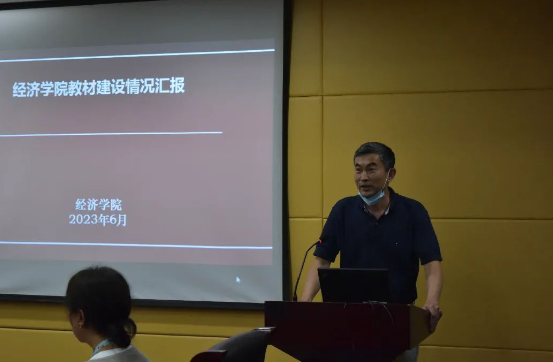 随后,校教务处副处长江晓东简要介绍了学校对教材建设的规划和布局,他还结合主题教育学习体会以及经济学院、商学院的主题发言,谈了自身对于“构建自主知识体系”以及对于“中国特色、中国风格、中国气派”的理解。紧接着,会议进入自由交流阶段。
