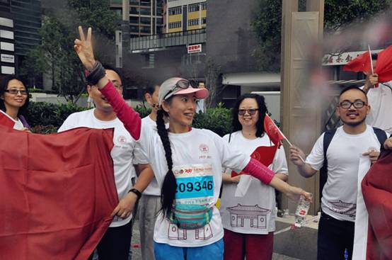 此次贵阳国际马拉松对校友们来说极具挑战性,因素有“地无三尺平”的贵阳,其马拉松赛道据计算有10个爬坡,每个坡爬升4百米,每个坡长度为600米左右,极大增加了跑马的难度。但助威团激情昂扬、振奋人心的加油呐喊声,给到每一位上财运动员巨大的精神动力,校友们看到加油助威团都露出一脸兴奋的笑容,被坡道“折磨”的疲惫感一扫而空。