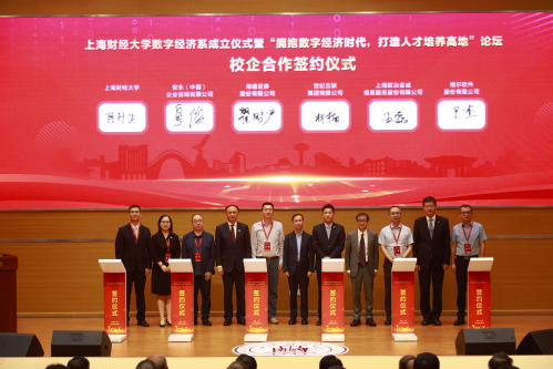 揭牌仪式结束后,阿里巴巴控股集团、阿里云智能集团、淘天集团与上海财经大学数字经济系签署全面合作协议,并宣布成立上财-阿里联合实验室,世纪互联集团有限公司、海通证券股份有限公司、上海欧冶金诚信息服务股份有限公司、安永(中国)企业咨询有限公司与格尔软件股份有限公司也与上海财经大学数字经济系签署了合作协议。